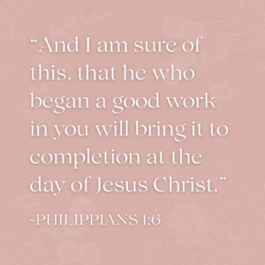 For years I’ve returned to the promise of Philippians 1:6 to encourage myself in my own battles with sin. Paul tells the Philippians “I am sure of this, that he who began a good work in you will bring it to completion at the day of Jesus Christ.” This is the promise for all of those who are His. Now it encourages me as I watch my children growing up.