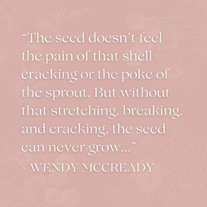 The seed doesn’t feel the pain of that shell cracking or the poke of the sprout. But without that stretching, breaking, and cracking, the seed can never grow into a plant with a stem and leaves that produce fruit.