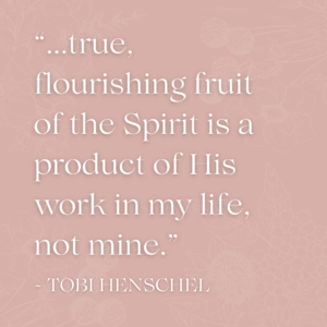 As I perform this heart-check, I need to remember: these fruits of the Spirit are not things that we can produce in our lives by just gritting our teeth and trying harder. I can’t say, “Oooh, I need to be more patient,” and just try harder. Certainly, I can work on these characteristics. But true, flourishing fruit of the Spirit is a product of His work in my life, not mine. He works in me and these fruits become stronger and more apparent. I need to let Him do His work in me.
