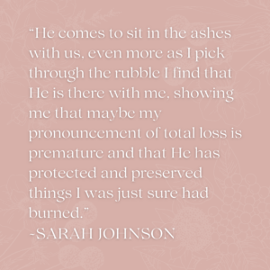 I think God has grace for His broken and bewildered soot-covered farmers. He comes to sit in the ashes with us, even more as I pick through the rubble I find that He is there with me, showing me that maybe my pronouncement of total loss is premature and that He has protected and preserved things I was just sure had burned.